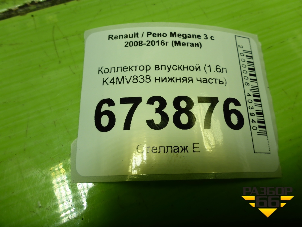 Коллектор впускной (1.6л K4MV838 нижняя часть) (8200329496) для Renault Megane 3 с 2008-2016г (Меган) в Челябинске