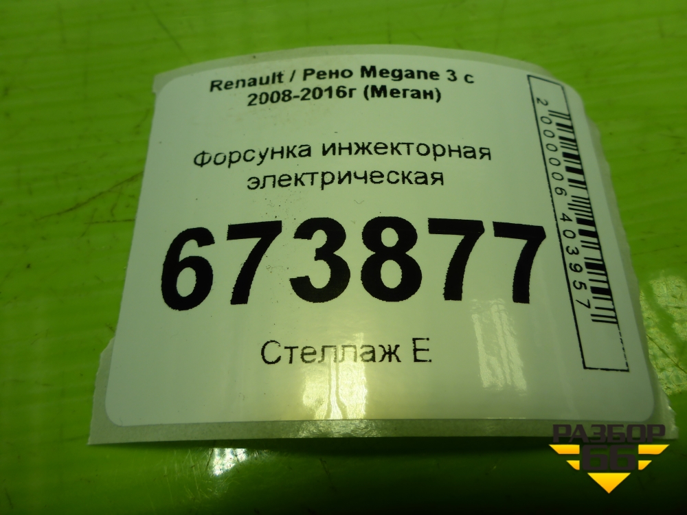 Форсунка инжекторная электрическая (1.6л K4MV838) (H132259) для Renault Megane 3 с 2008-2016г (Меган) в Челябинске