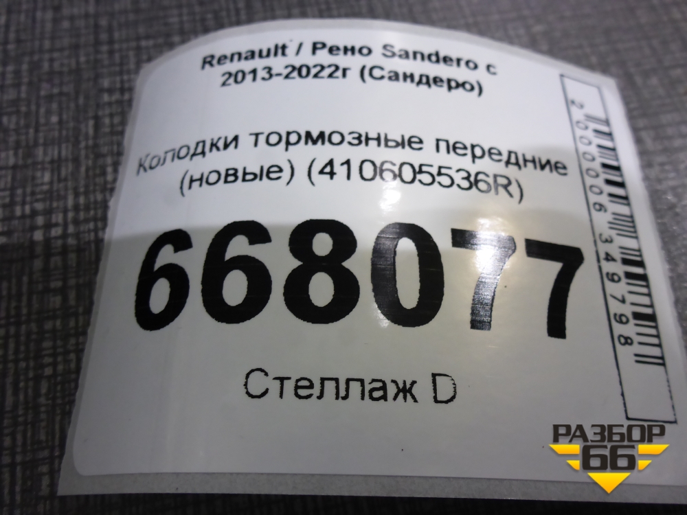 Колодки тормозные передние (новые) (410605536R) для Renault Sandero с 2013-2022г (Сандеро) в Челябинске