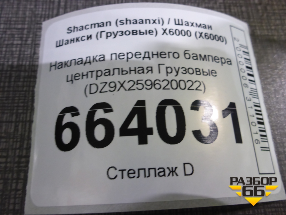Накладка переднего бампера центральная (DZ9X259620022) для Shacman (shaanxi) X6000 (Х6000) в Челябинске