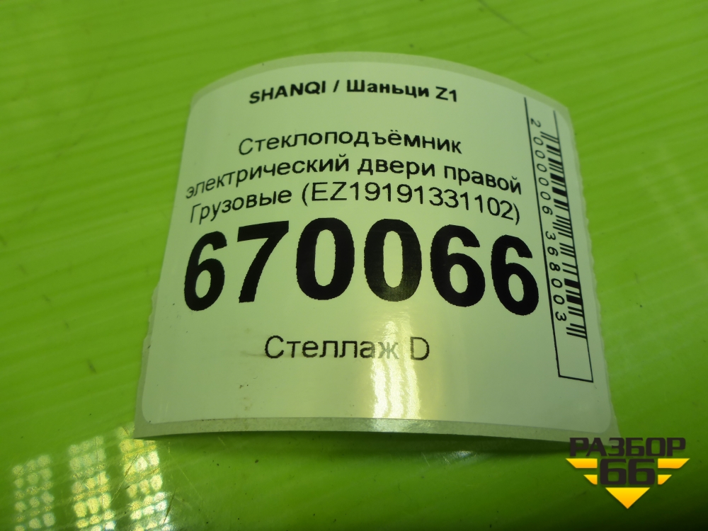 Стеклоподъёмник электрический двери правой (EZ19191331102) для SHANQI Z1 в Челябинске