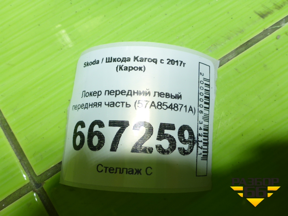 Локер передний левый передняя часть (57A854871A) для Skoda Karoq с 2017г (Карок) в Челябинске