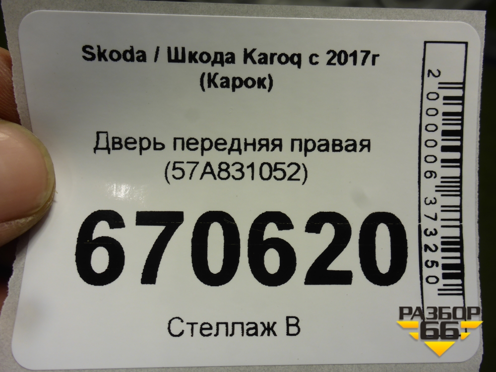 Дверь передняя правая (57A831052) для Skoda Karoq с 2017г (Карок) в Челябинске