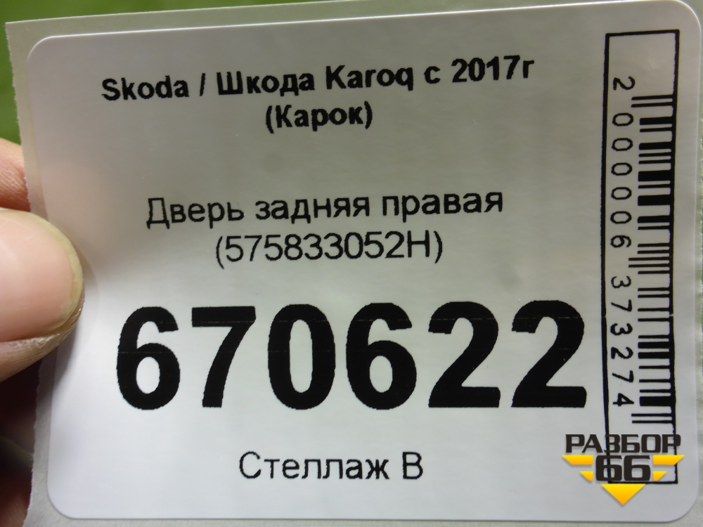 Дверь задняя правая (575833052H) для Skoda Karoq с 2017г (Карок) в Челябинске