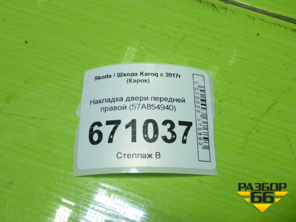 Накладка двери передней правой (57A854940) для Skoda Karoq с 2017г (Карок) в Челябинске