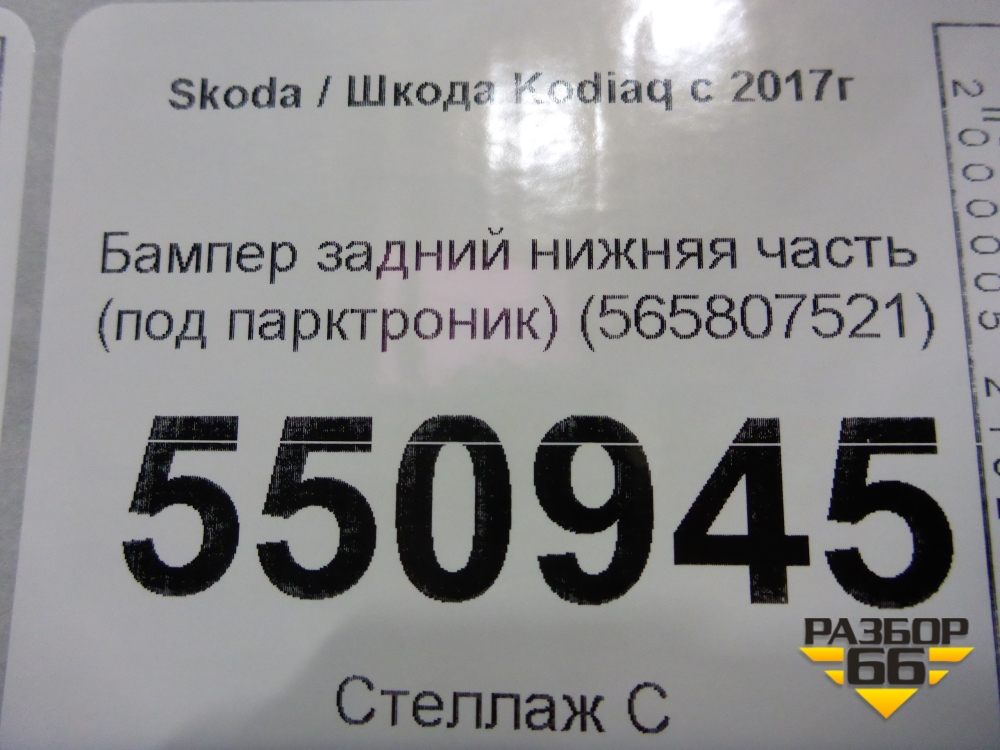 Бампер задний нижняя часть (под парктроник) (565807521) для Skoda Kodiaq с 2017г (Кодиак) в Челябинске