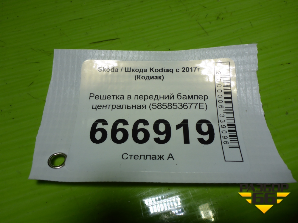 Решетка в передний бампер центральная (585853677E) для Skoda Kodiaq с 2017г (Кодиак) в Челябинске