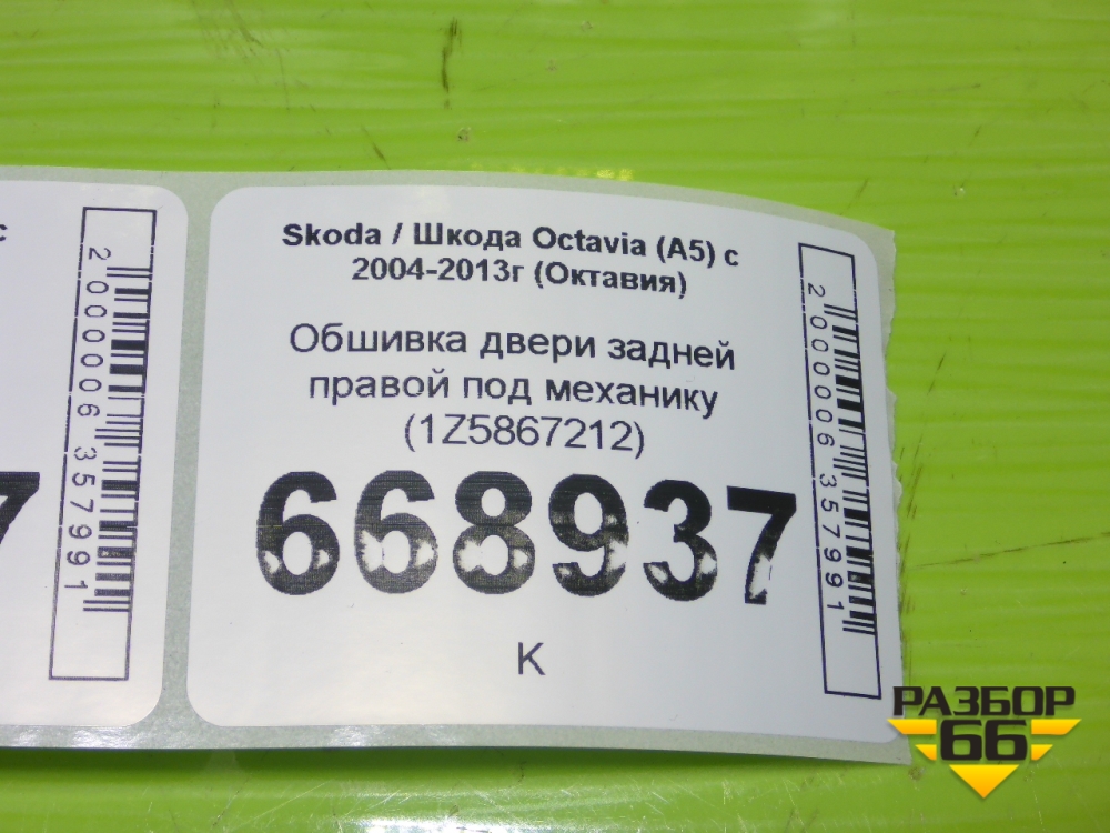 Обшивка двери задней правой под механику (1Z5867212) для Skoda Octavia (А5) с 2004-2013г (Октавия) в Челябинске