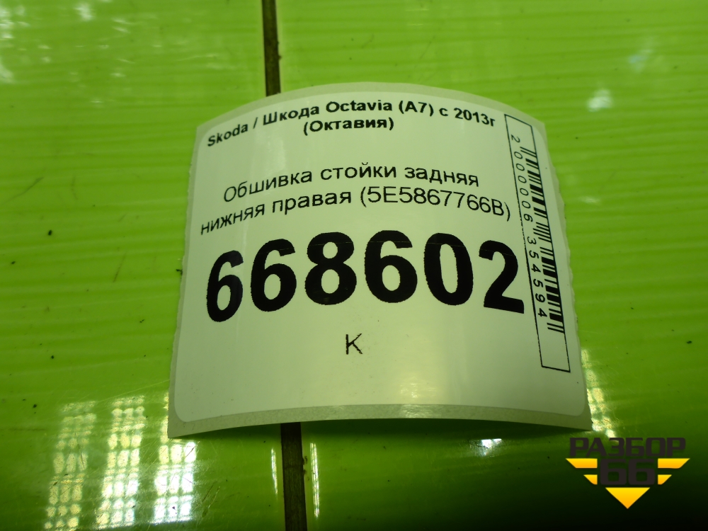 Обшивка стойки задняя нижняя правая (лифтбек) (5E5867766B) для Skoda Octavia (A7) с 2013г (Октавия) в Челябинске