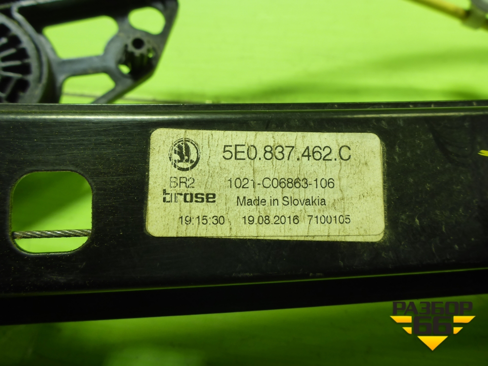 Стеклоподъёмник электрический передний правый (без моторчика) (5E0837462C) для Skoda Octavia (A7) с 2013г (Октавия) в Челябинске