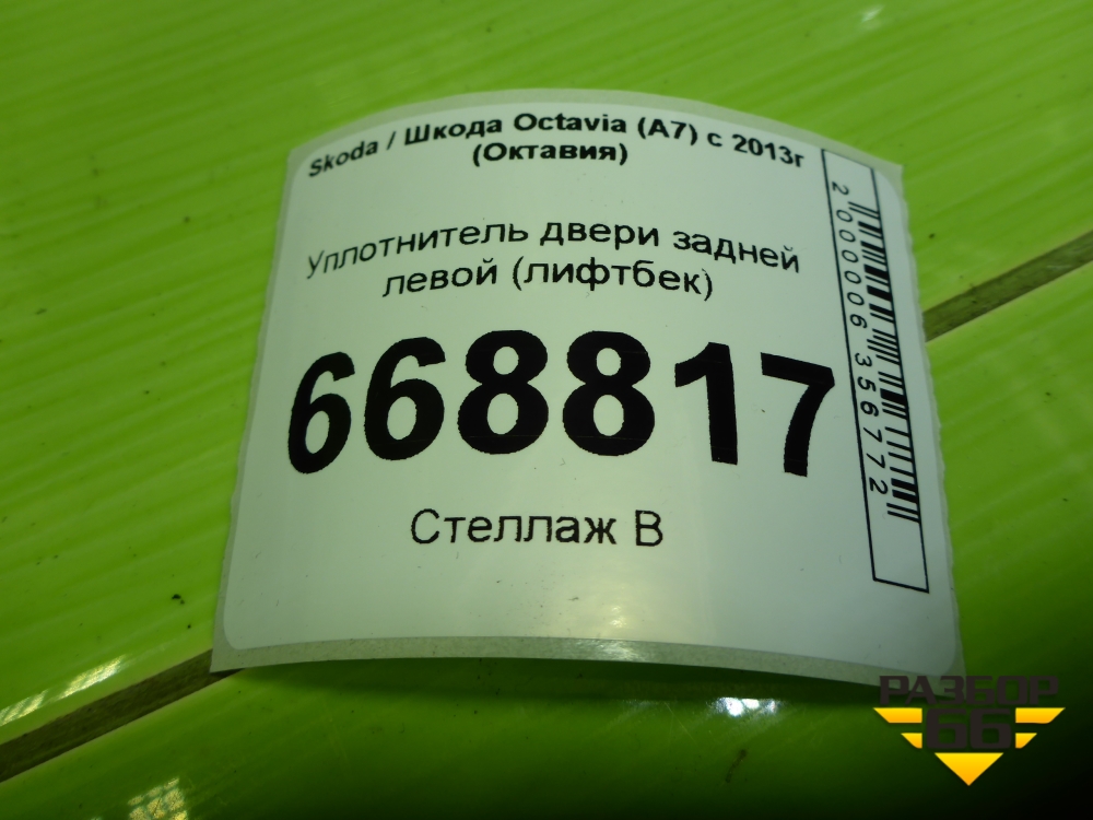 Уплотнитель двери задней левой (лифтбек) (5E5867367F) для Skoda Octavia (A7) с 2013г (Октавия) в Челябинске