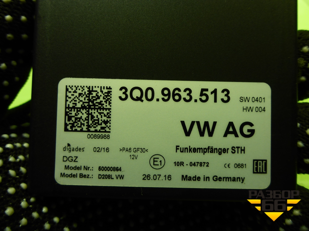 Блок электронный (управления Webasto) (3Q0963513) для Skoda Octavia (A7) с 2013г (Октавия) в Челябинске