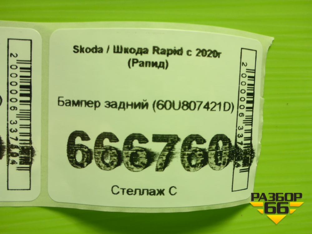Бампер задний (60U807421D) для Skoda Rapid с 2020г (Рапид) в Челябинске