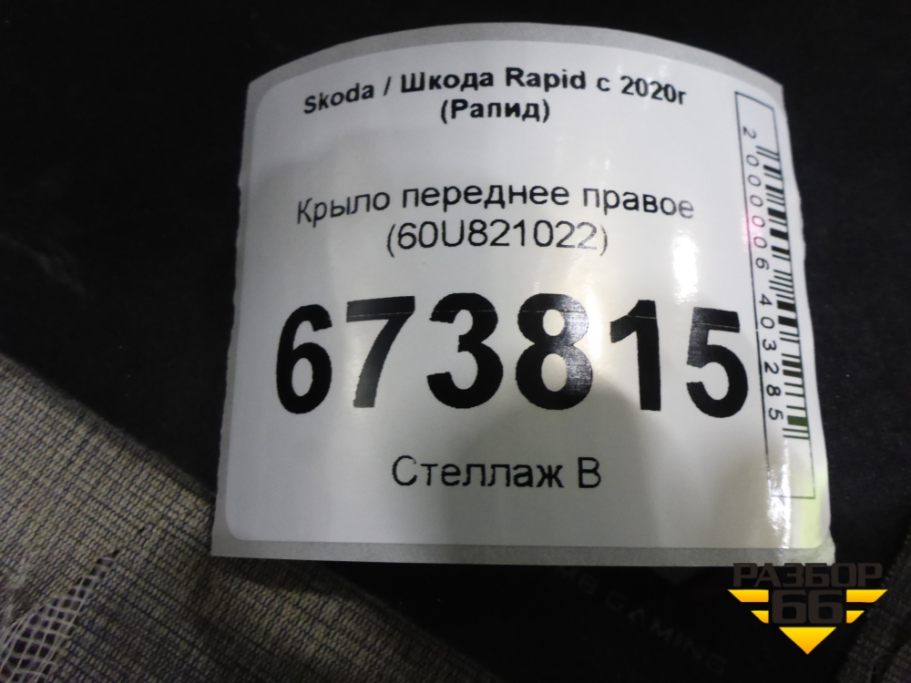 Крыло переднее правое (60U821022) для Skoda Rapid с 2020г (Рапид) в Челябинске