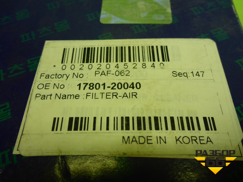 Фильтр воздушный (PAF062) для Toyota Camry V40 с 2006-2011г (Камри) в Челябинске