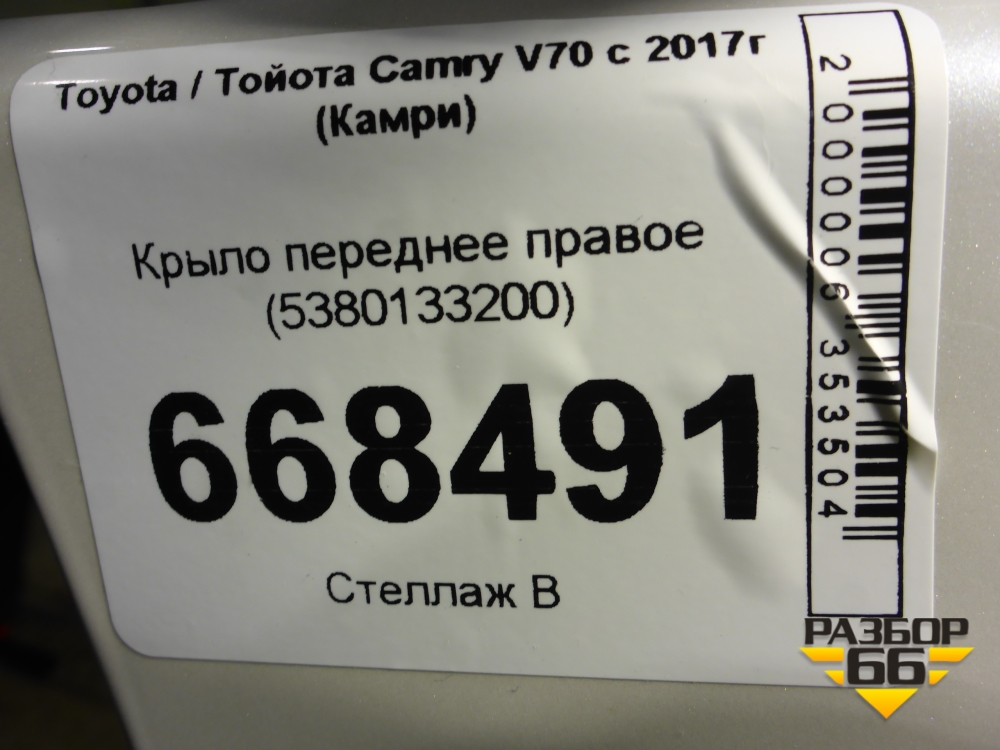 Крыло переднее правое (5380133200) для Toyota Camry V70 с 2017г (Камри) в Челябинске