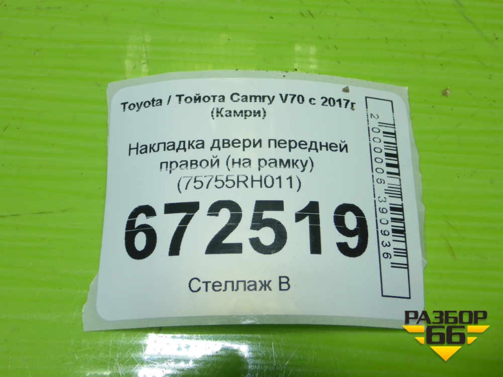 Накладка двери передней правой (на рамку) (75755RH011) для Toyota Camry V70 с 2017г (Камри) в Челябинске