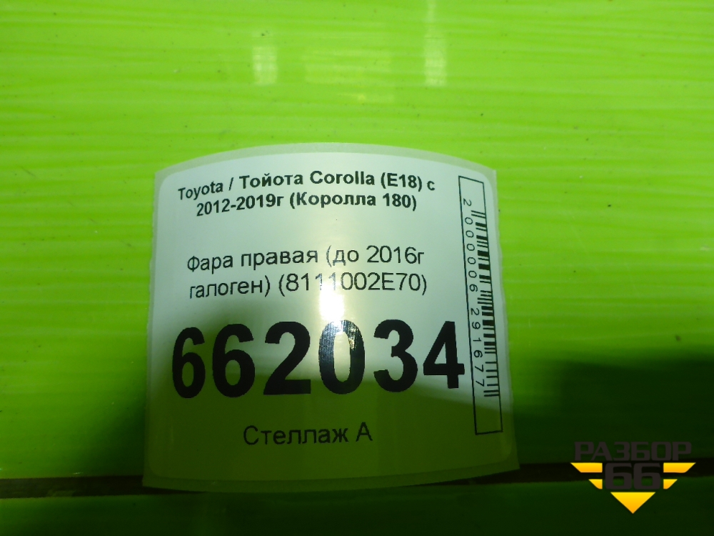 Фара правая (до 2016г галоген) (8111002E70) для Toyota Corolla (E18) с 2012-2019г (Королла 180) в Челябинске