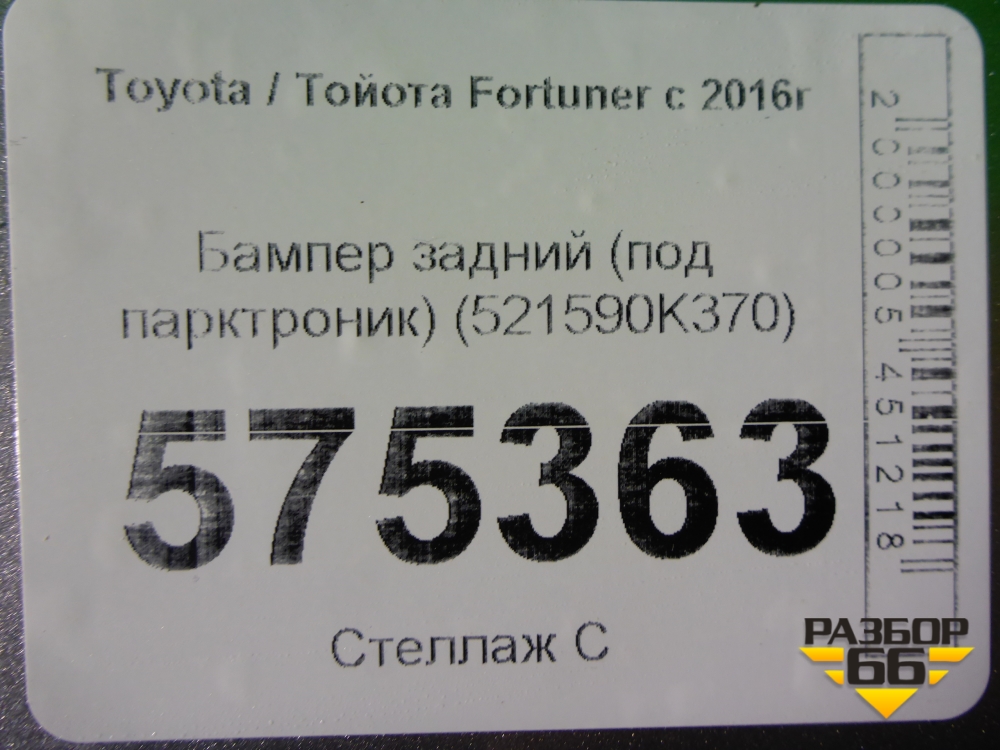 Бампер задний (под парктроник) (521590K370) для Toyota Fortuner с 2016г (Фортунер) в Челябинске