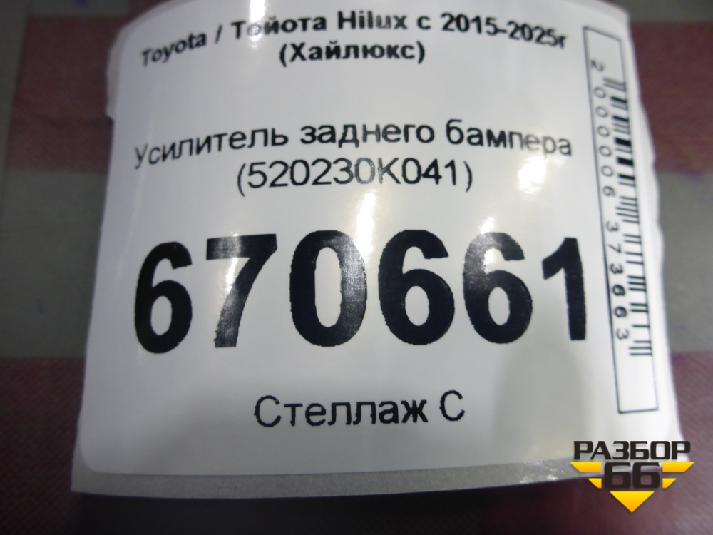 Усилитель заднего бампера (520230K041) для Toyota Hilux с 2015-2025г (Хайлюкс) в Челябинске