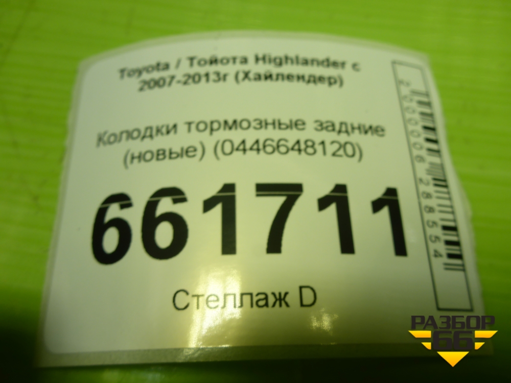 Колодки тормозные задние (новые) (0446648120) для Toyota Highlander с 2007-2013г (Хайлендер) в Челябинске