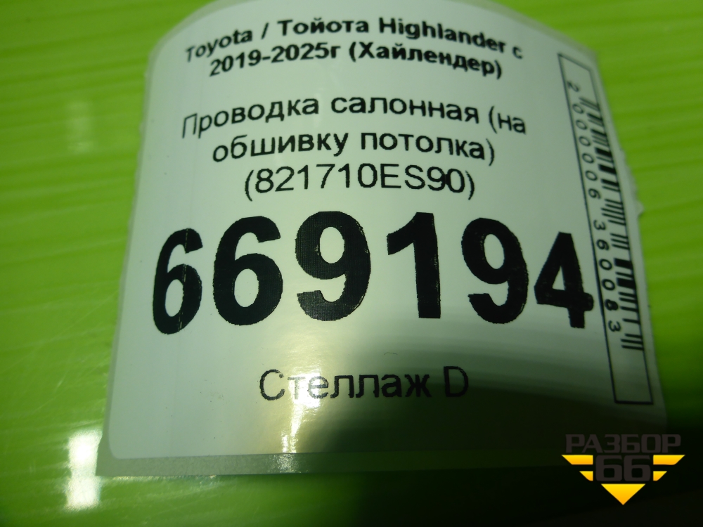 Проводка салонная (на обшивку потолка) (821710ES90) для Toyota Highlander с 2019-2025г (Хайлендер) в Челябинске