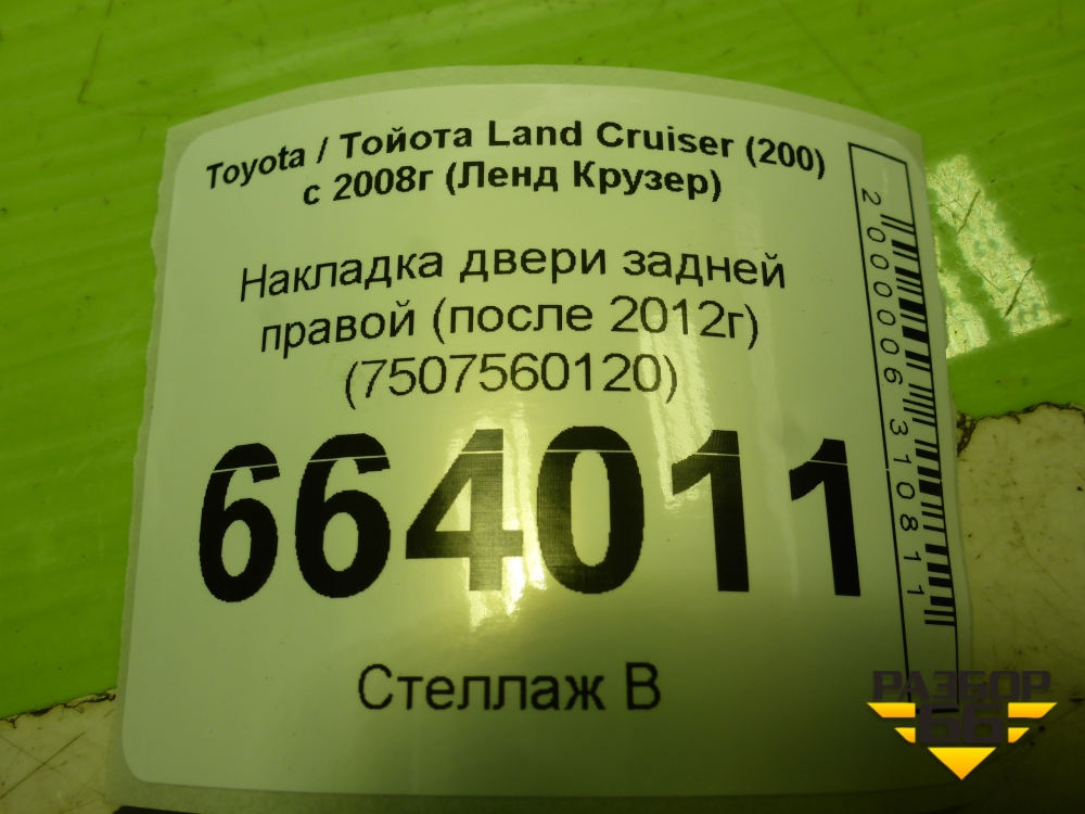 Накладка двери задней правой (после 2012г) (7507560120) для Toyota Land Cruiser (200) с 2008г (Ленд Крузер) в Челябинске