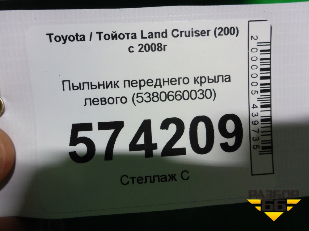 Пыльник переднего крыла левого (5380660030) для Toyota Land Cruiser (200) с 2008г (Ленд Крузер) в Челябинске