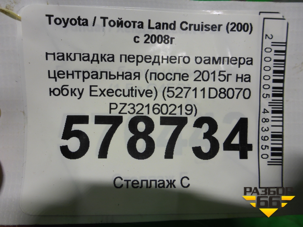 Накладка переднего бампера центральная (после 2015г на юбку Executive) (52711D8070 PZ32160219) для Toyota Land Cruiser (200) с 2008г (Ленд Крузер) в Челябинске