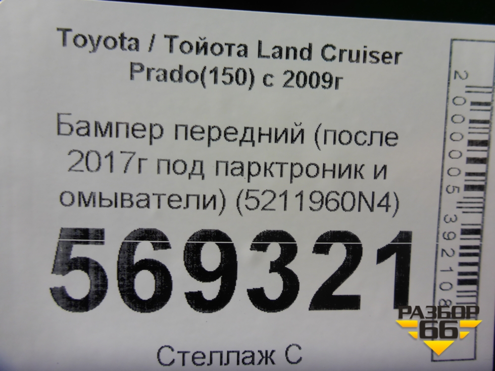Бампер передний (после 2017г под парктроник и омыватели) (5211960N4) для Toyota Land Cruiser Prado(150) с 2009г (Ленд Крузер Прадо) в Челябинске