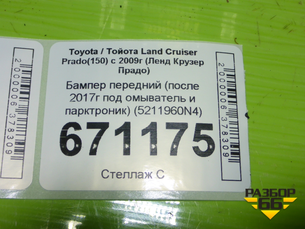 Бампер передний (после 2017г под омыватель и парктроник) (5211960N4) для Toyota Land Cruiser Prado(150) с 2009г (Ленд Крузер Прадо) в Челябинске