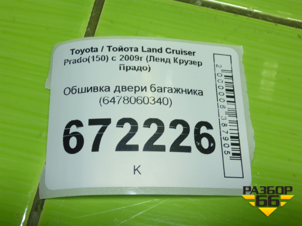 Обшивка двери багажника (6478060340) для Toyota Land Cruiser Prado(150) с 2009г (Ленд Крузер Прадо) в Челябинске