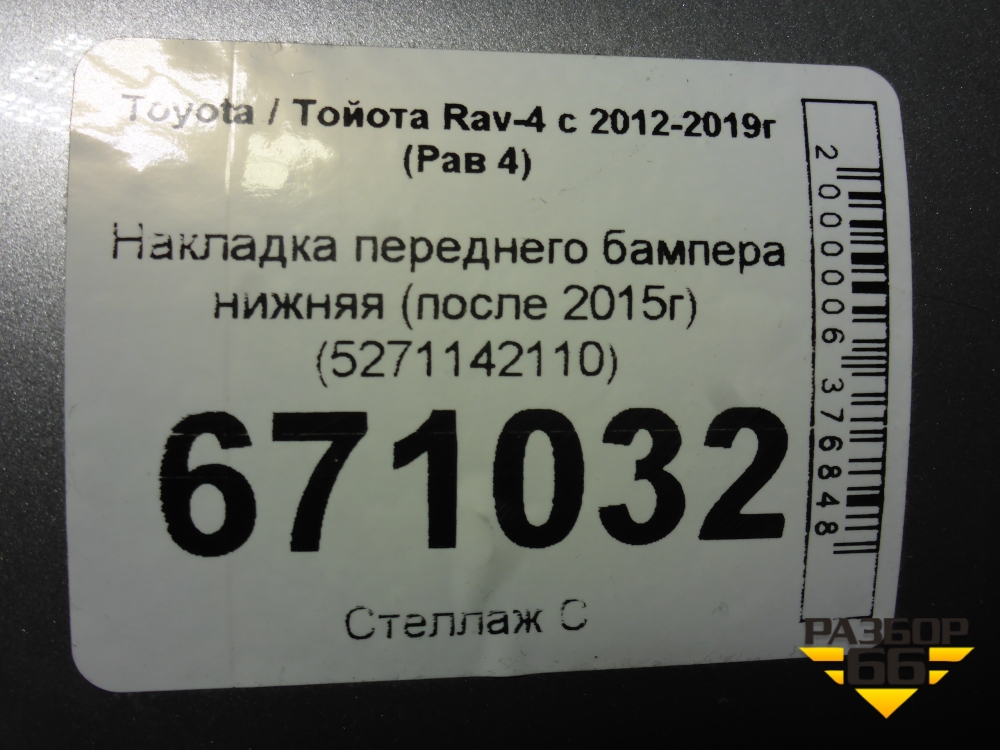 Накладка переднего бампера нижняя (после 2015г) (5271142110) для Toyota Rav-4 с 2012-2019г (Рав 4) в Челябинске