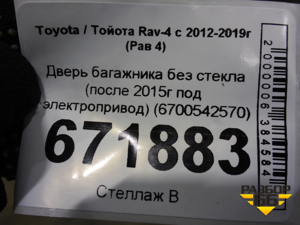 Дверь багажника без стекла (после 2015г под электропривод) (6700542570) для Toyota Rav-4 с 2012-2019г (Рав 4) в Челябинске