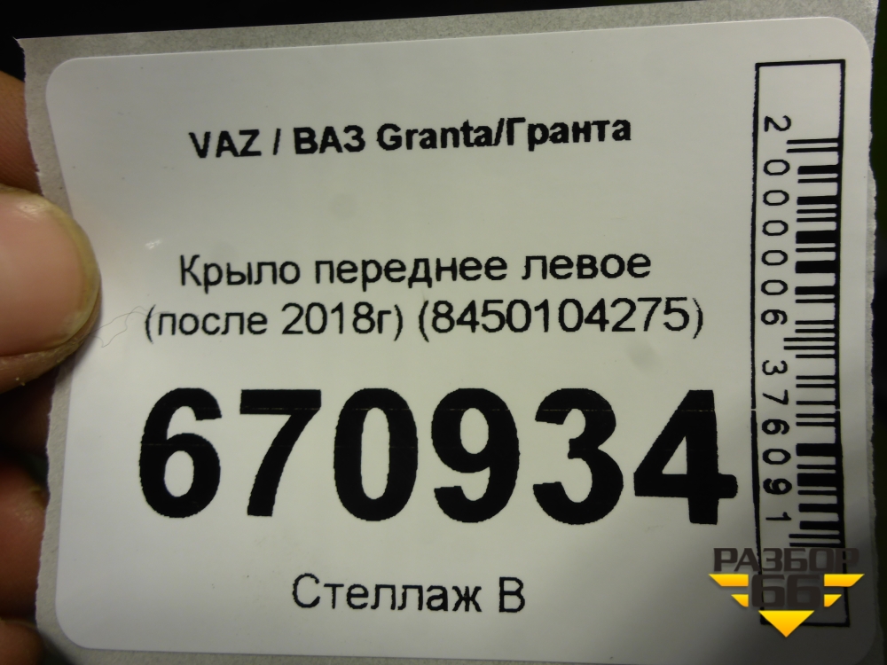 Крыло переднее левое (после 2018г) (8450104275) для VAZ Granta/Гранта в Челябинске