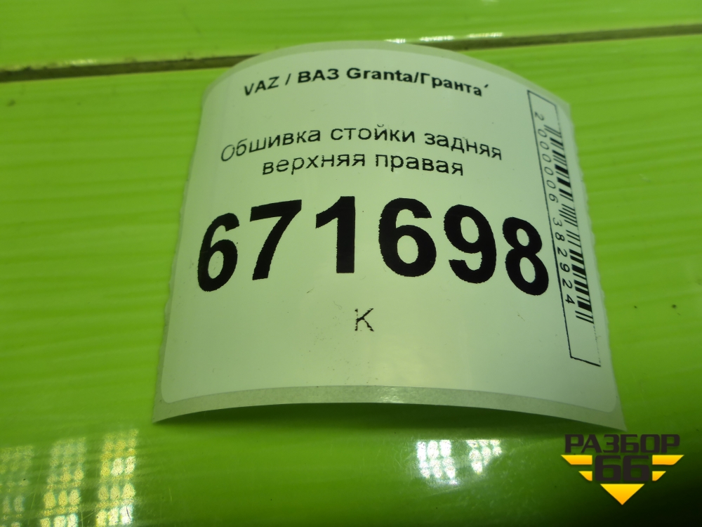 Обшивка стойки задняя верхняя правая (седан) (8450001696) для VAZ Granta/Гранта в Челябинске