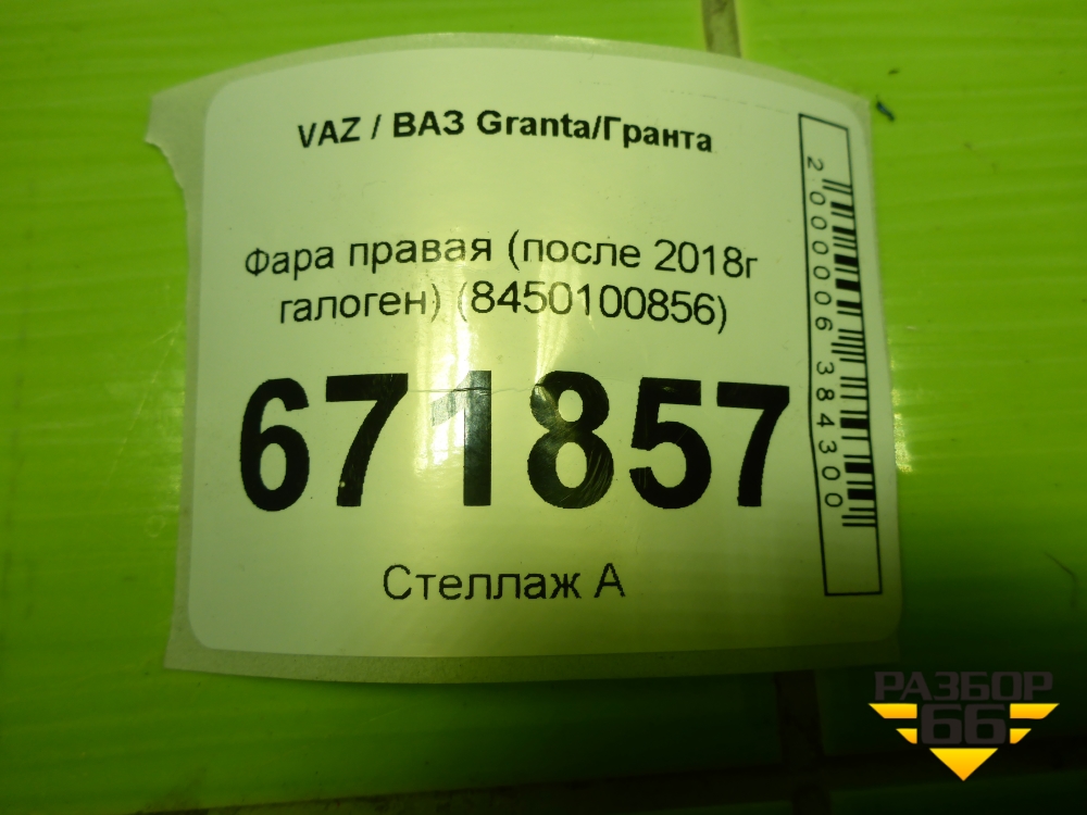Фара правая (после 2018г галоген) (8450100856) для VAZ Granta/Гранта в Челябинске