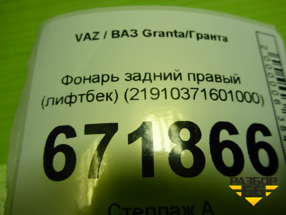 Фонарь задний правый (лифтбек) (21910371601000) для VAZ Granta/Гранта в Челябинске