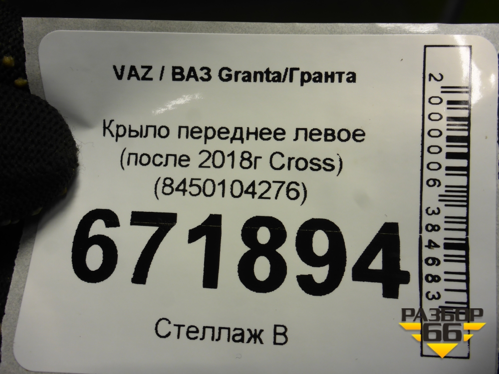 Крыло переднее левое (после 2018г Cross) (8450104276) для VAZ Granta/Гранта в Челябинске