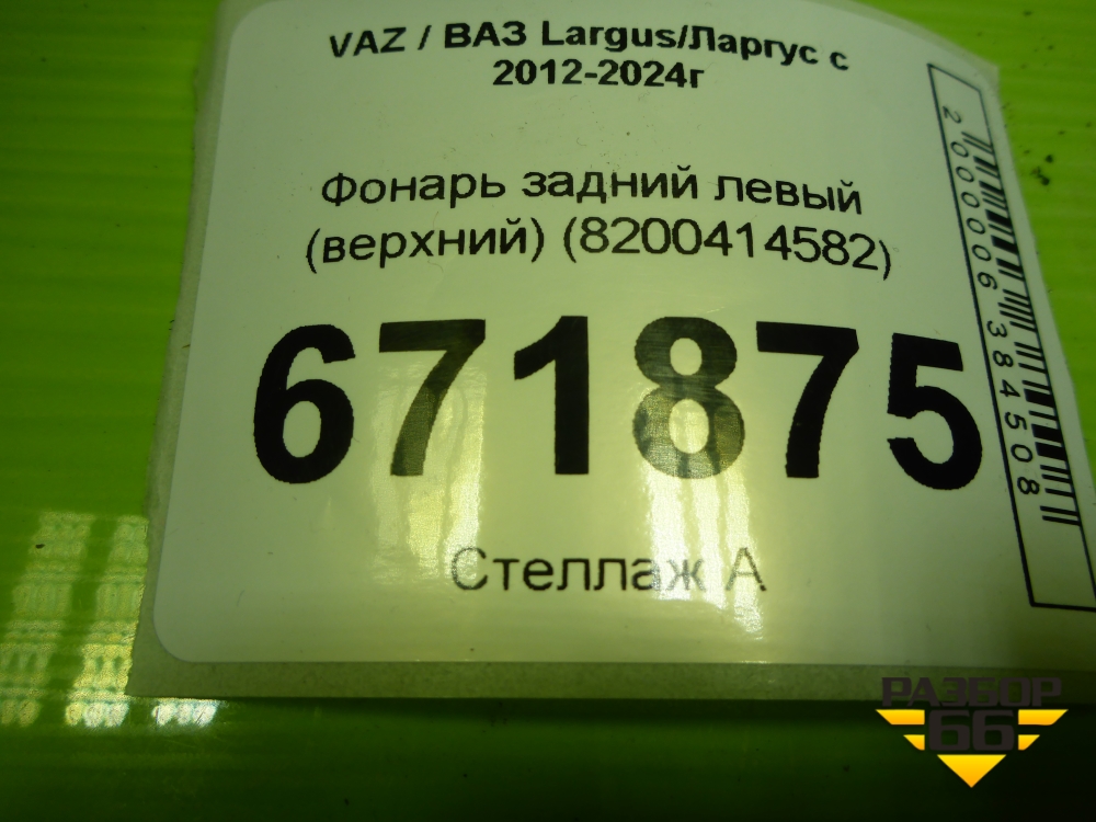 Фонарь задний левый (верхний) (8200414582) для VAZ Largus/Ларгус с 2012-2024г в Челябинске
