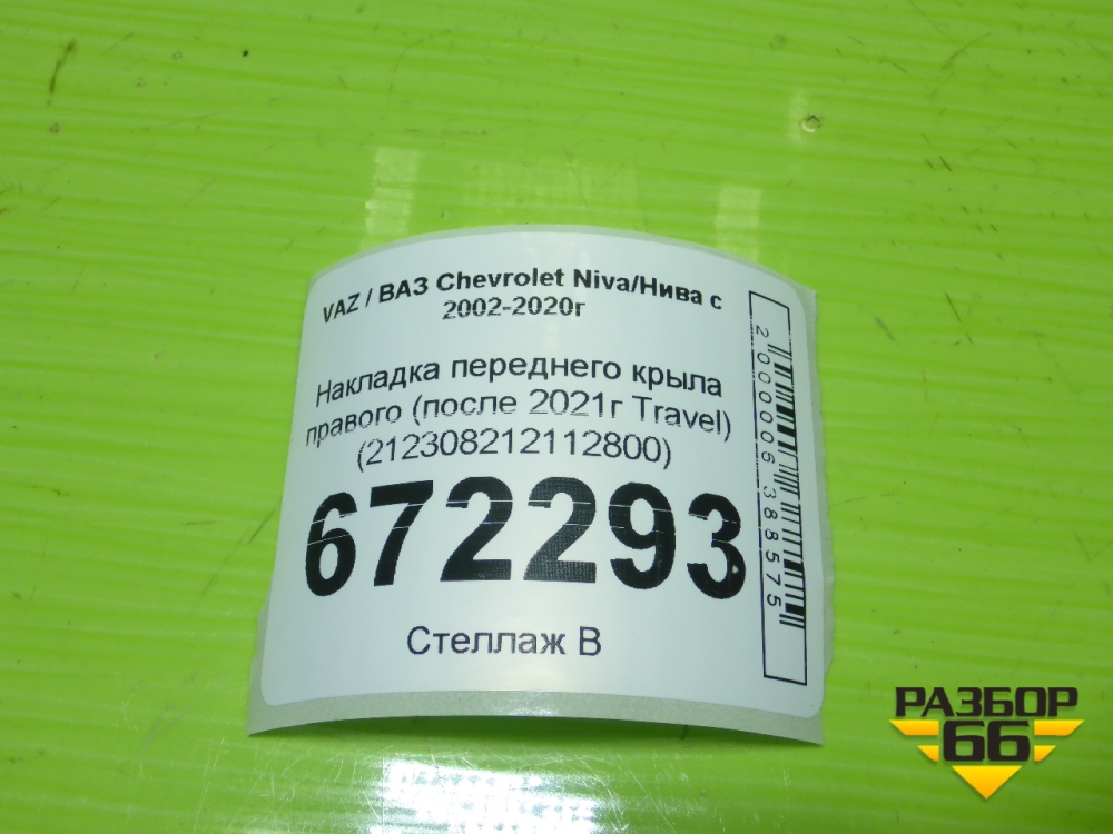 Накладка переднего крыла правого (после 2021г Travel) (212308212112800) для VAZ Chevrolet Niva/Нива с 2002-2020г в Челябинске