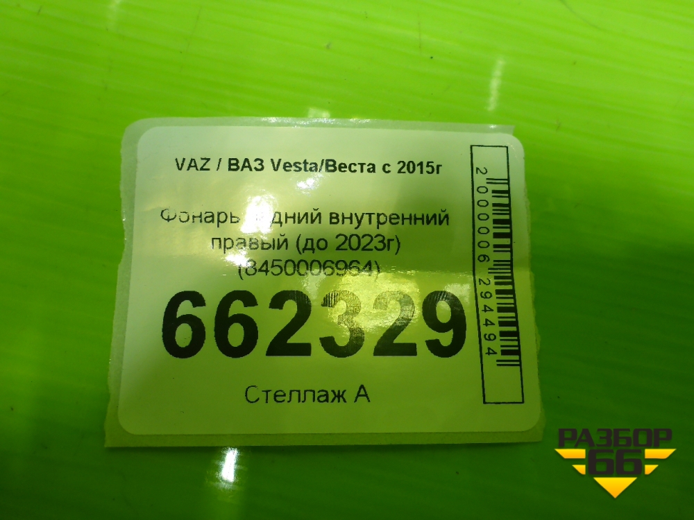 Фонарь задний внутренний правый (до 2022г) (8450006964) для VAZ Vesta/Веста с 2015г в Челябинске