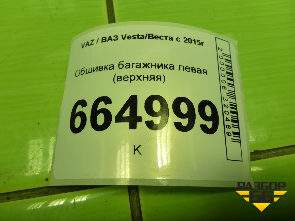 Обшивка багажника левая (универсал верхняя) (8450007567) для VAZ Vesta/Веста с 2015г в Челябинске