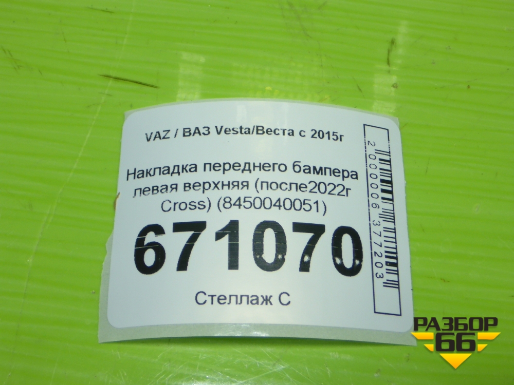 Накладка переднего бампера левая верхняя (после2022г Cross) (8450040051) для VAZ Vesta/Веста с 2015г в Челябинске
