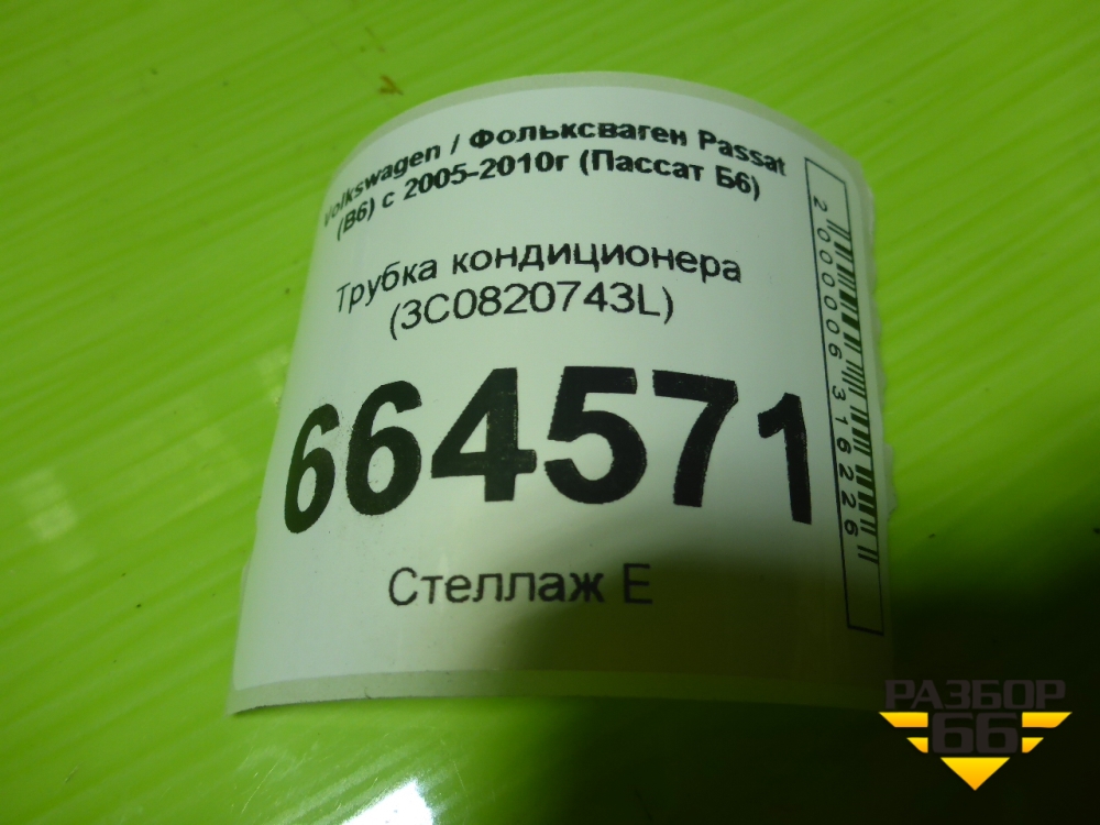 Трубка кондиционера (3C0820743L) для Volkswagen Passat (B6) с 2005-2010г (Пассат Б6) в Челябинске