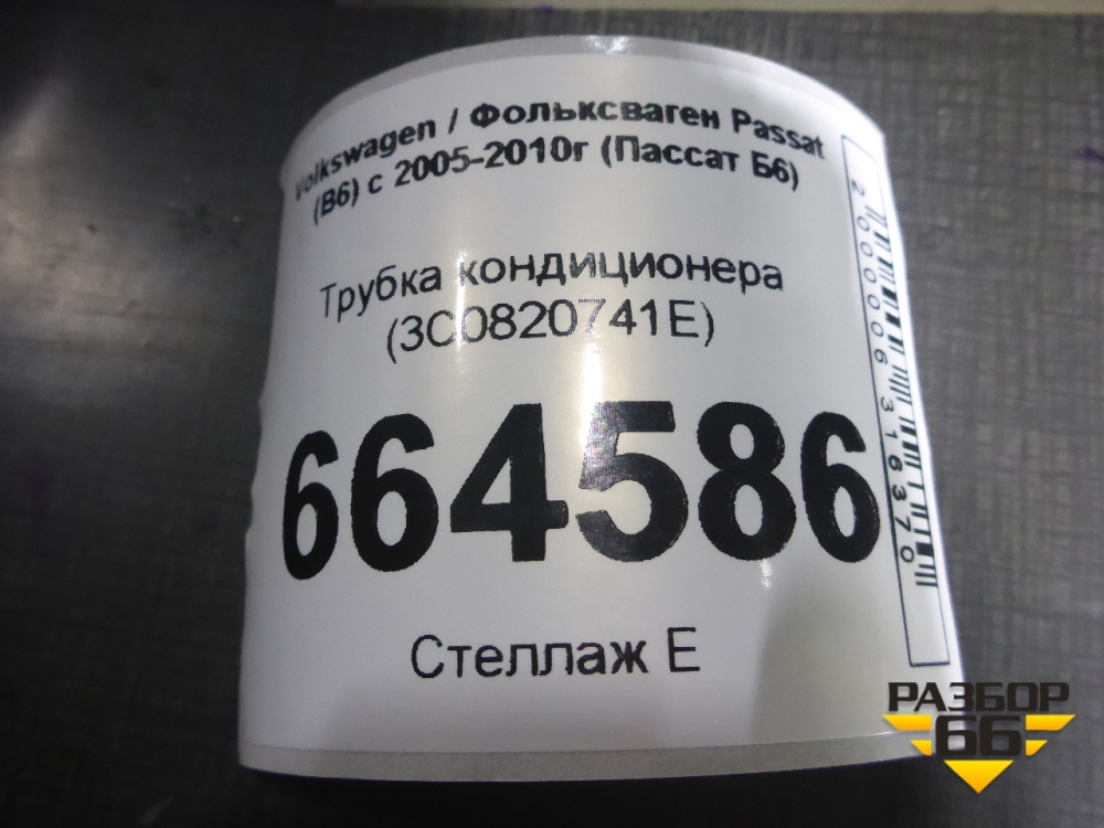Трубка кондиционера (3C0820741E) для Volkswagen Passat (B6) с 2005-2010г (Пассат Б6) в Челябинске