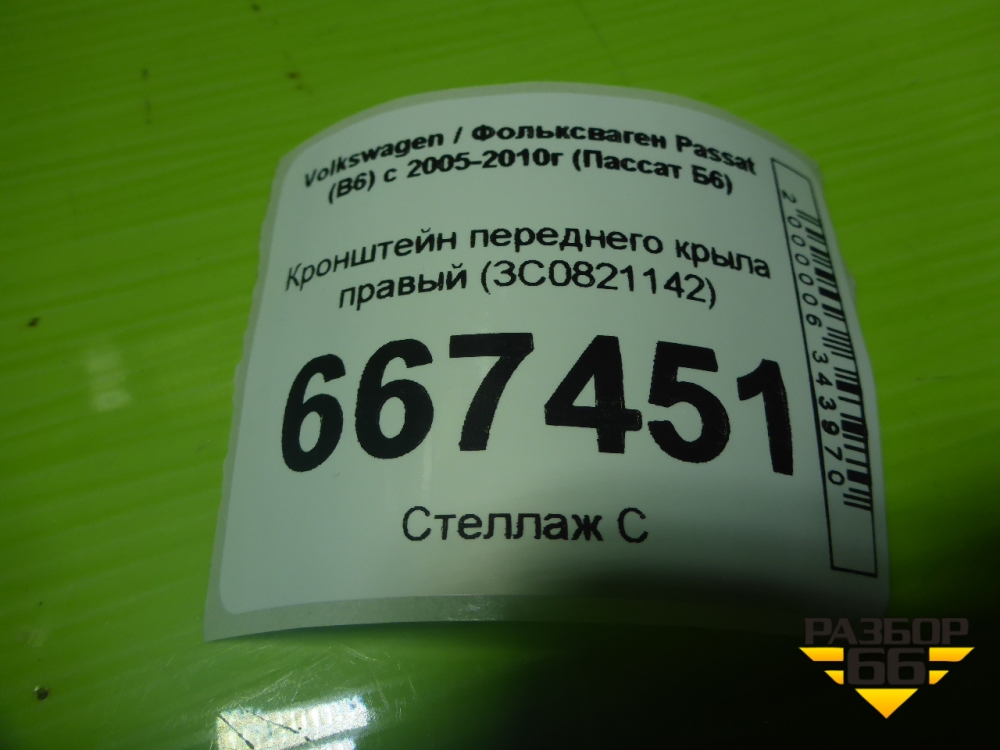 Кронштейн переднего крыла правый (3C0821142) для Volkswagen Passat (B6) с 2005-2010г (Пассат Б6) в Челябинске
