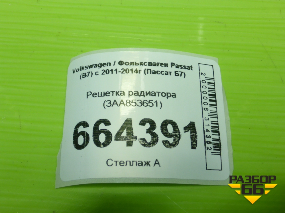 Решетка радиатора (3AA853651) для Volkswagen Passat (В7) с 2011-2014г (Пассат Б7) в Челябинске