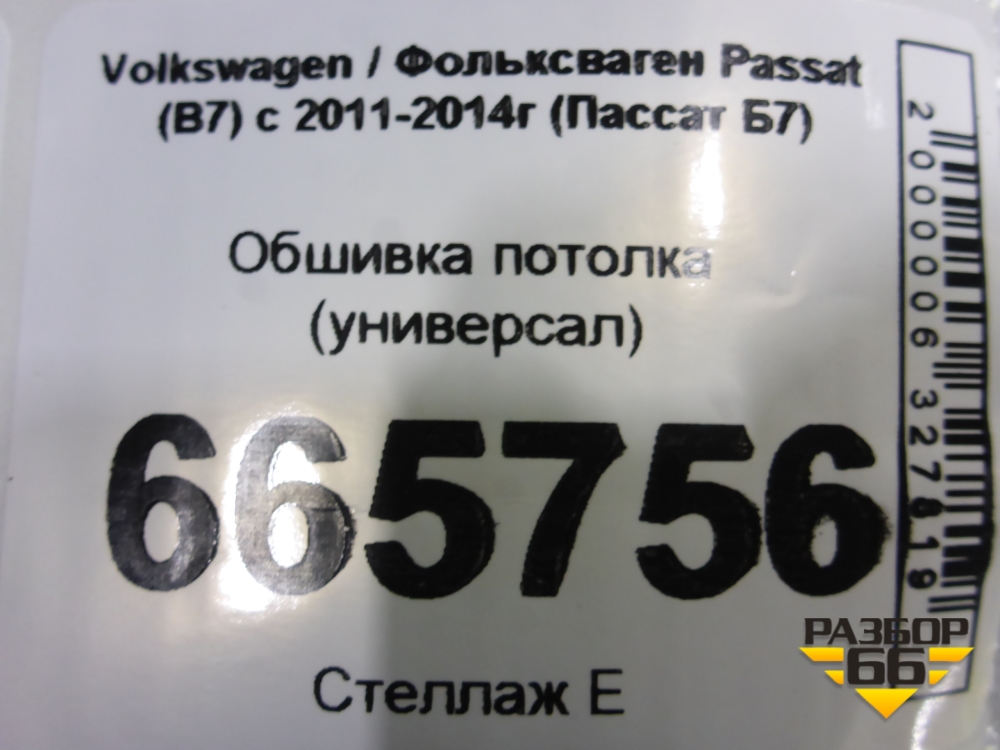 Обшивка потолка (универсал) (3AF867501G) для Volkswagen Passat (В7) с 2011-2014г (Пассат Б7) в Челябинске
