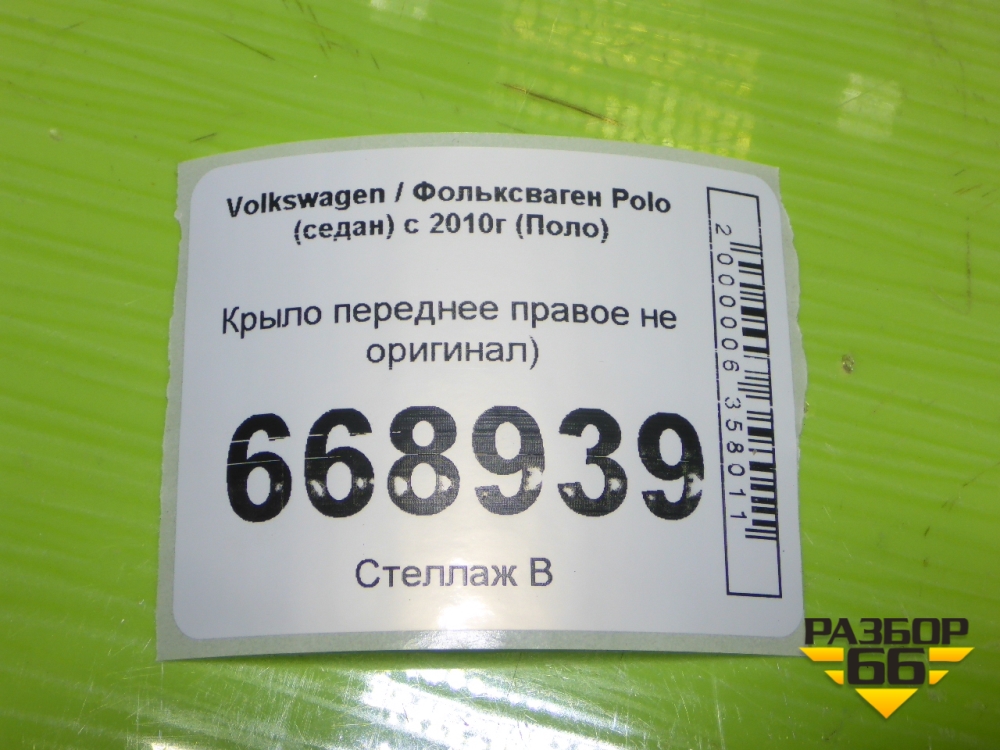 Крыло переднее правое (не оригинал) для Volkswagen Polo (седан) с 2010г (Поло) в Челябинске